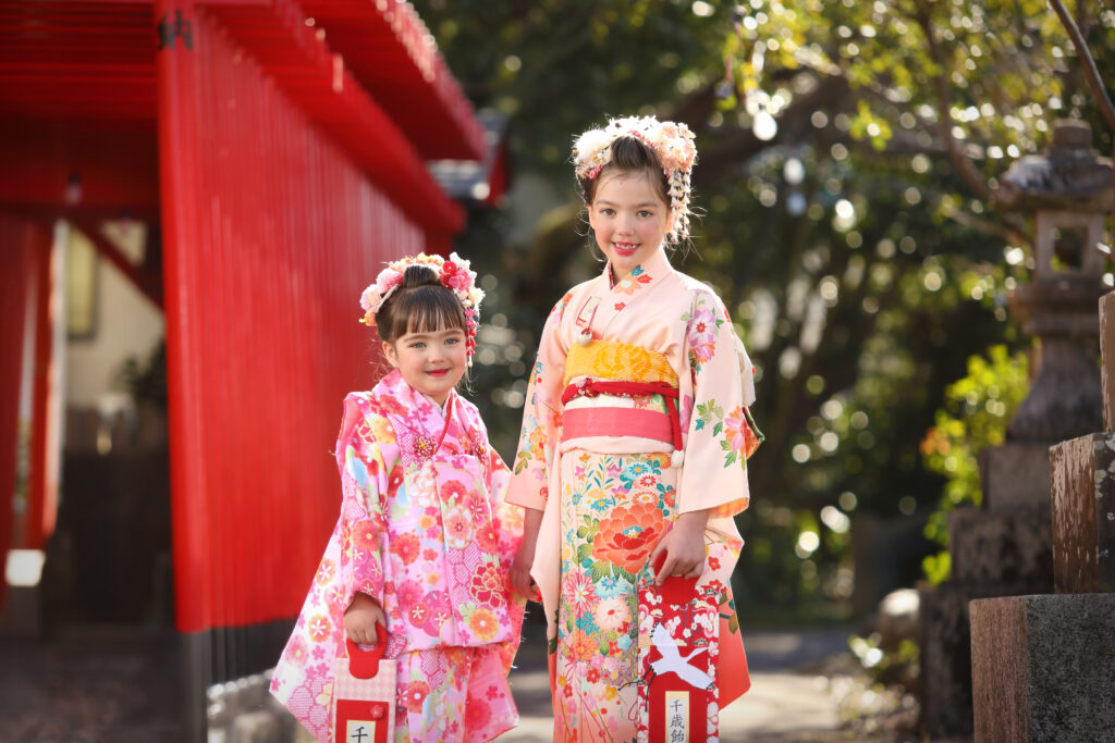 七五三はお子様の成長を願う節目の行事。3歳は男女とも、5歳は男の子の「袴着」、7歳は女の子の「帯解き」として歴史があります。 むかしは11月15日を七五三の日としてその日を中心に撮影される方が多かったようですがいまはご家族の働き方やご兄弟のに合わせて年中撮影を承っております。 お宮参りの着物をお持ちの方は男女とも5歳まで着用可能です。女の子は3歳の時に、男の子は3と5歳どちらにも利用して生まれた時から同じお着物での成長を感じることができます。着用には肩揚げという袖の長さや袖口の補正が必要になります。撮影用無料補正も承ります。近くの神社でロケーション撮影も可能です。 |
